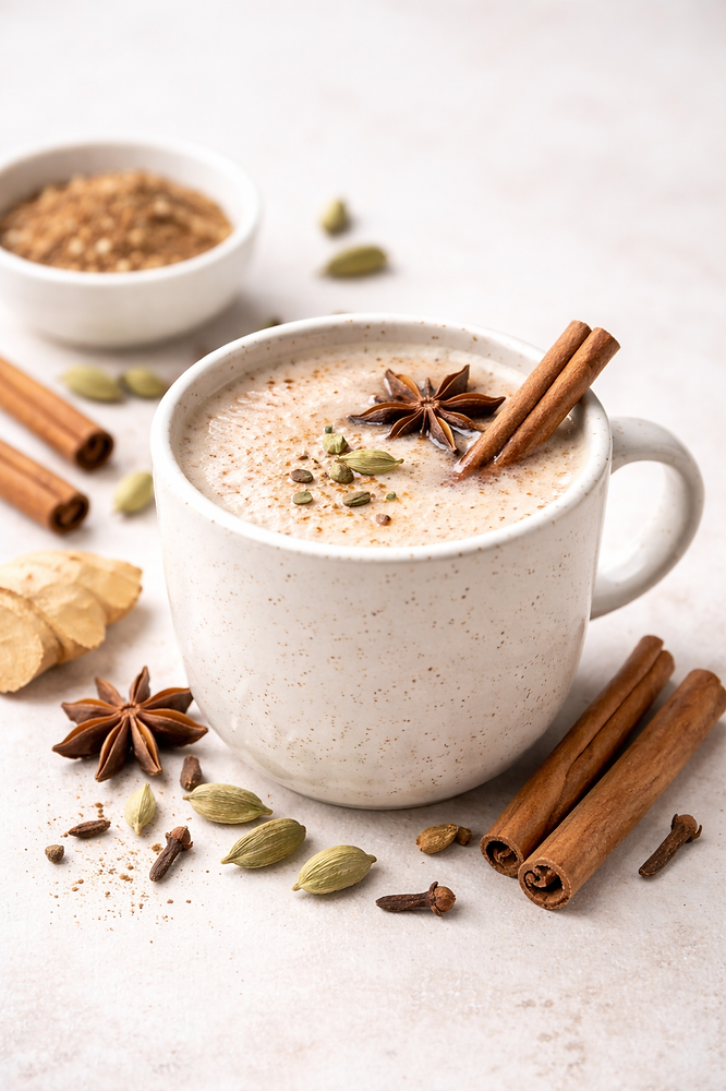 Chai Latte hat seine Wurzeln im traditionellen Masala Chai aus Indien – einer würzigen Mischung aus Tee, Milch und aromatischen Gewürzen. Der moderne Chai Latte verbindet diese Tradition mit cremigem Genuss und bewusster Achtsamkeit. Erfahre, woher Chai stammt, welche Zutaten ihn so besonders machen und warum natürliche Gewürze den Unterschied ausmachen.
